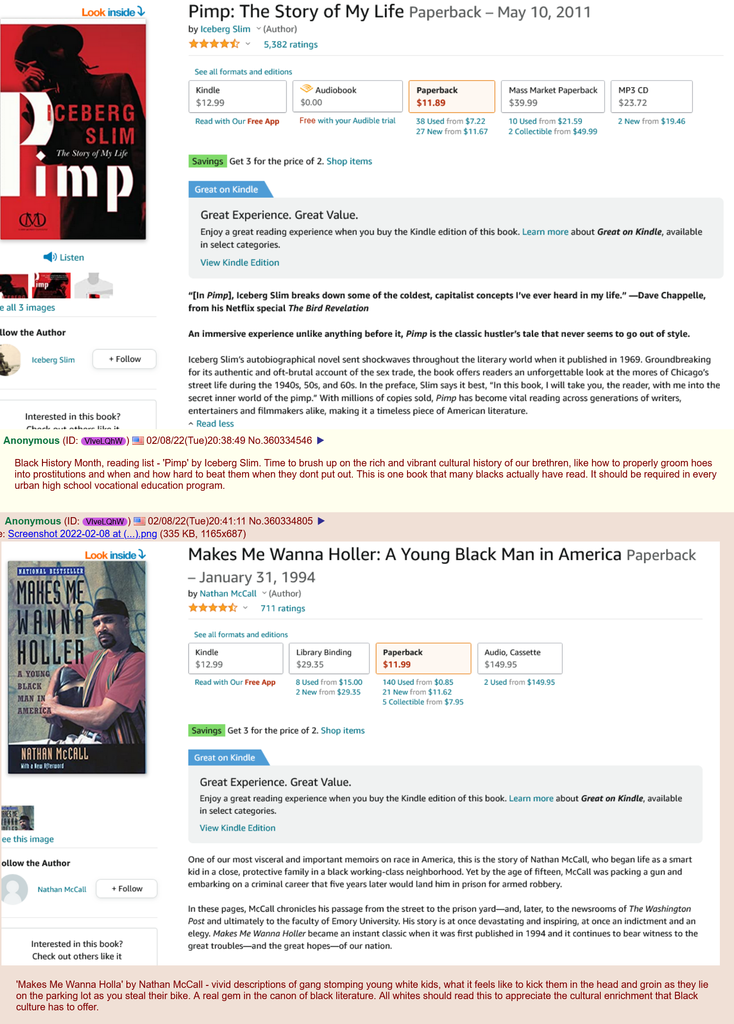 the book 'Pimp' is unironically the most read book among blacks