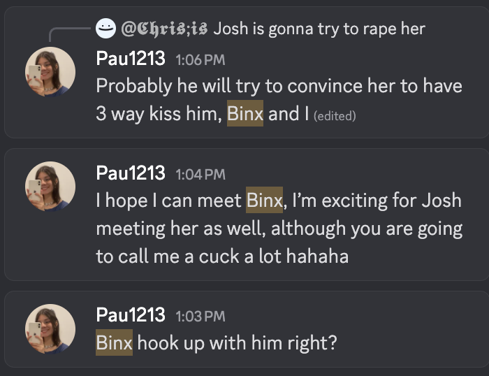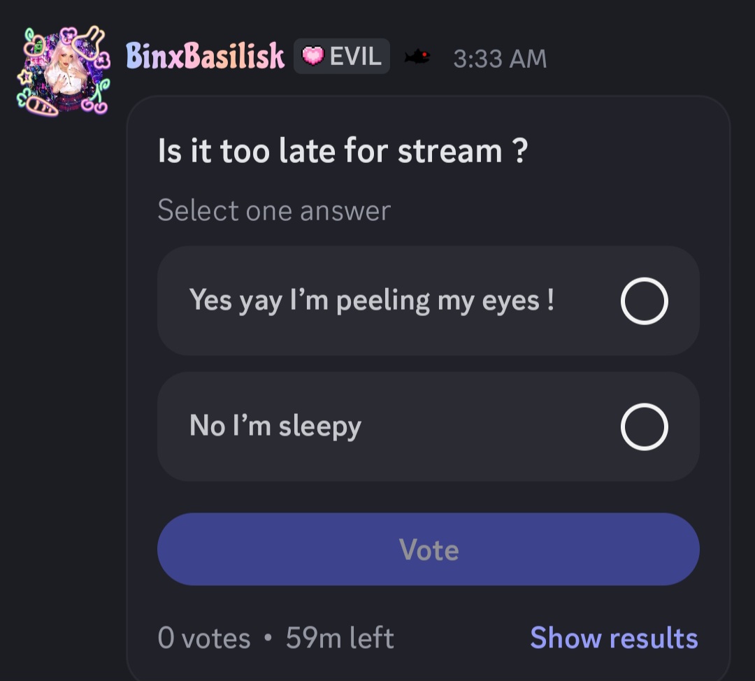 Discord drama edition>Who is this thread about?Famous House winner and Fishtank Season 3 1st place runner up, BinxBasilisk>Binx's accounts:https://www.twitch.tv/binxbasiliskhttps://www.kick.com/binxbasiliskhttps://www.youtube.com/@binxbasiliskxhttps://www.tiktok.com/@binxbasiliskhttps://x.com/Binxbasiliskkhttps://www.instagram.com/binxbasiliskhttps://www.patreon.com/cw/BinxBasiliskhttps://www.cameo.com/binxbasiliskhttps://open.spotify.com/track/47q4oKizV7rLvoPQ6e4Rh4Previous: >>24054447
