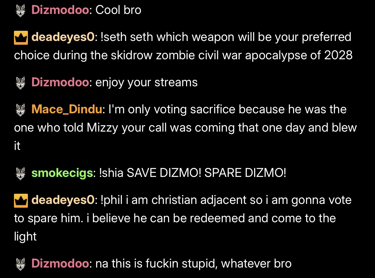 seth ran a poll to kick cum eater cause he was being weird and he got mad lol