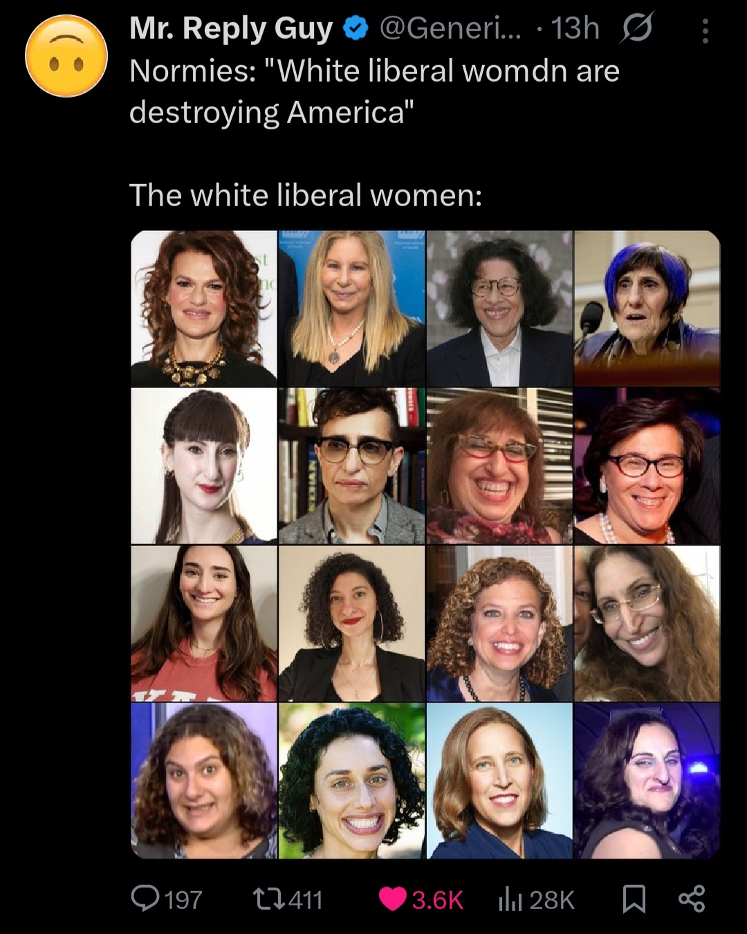 Kek. Micro plastics really done a number on zoomies, although his shoulders are very broad for a woman.