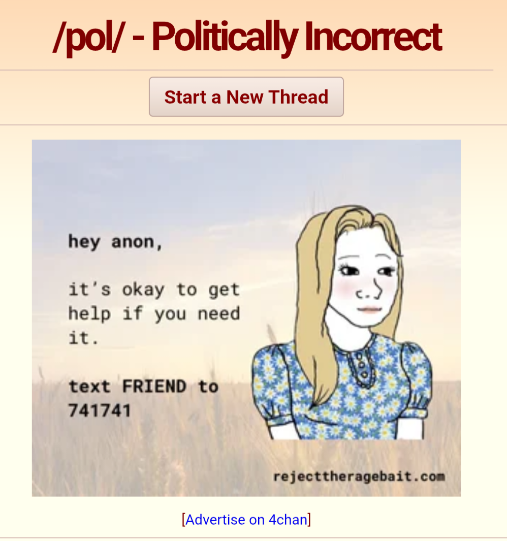 >>24096788>Maybe it's an innocent initiative by well-meaning liberal arts majors who want to help poor lonely chuds touch grass.that's likely who came up with the idea to advertise the organization on 4chan, yeah