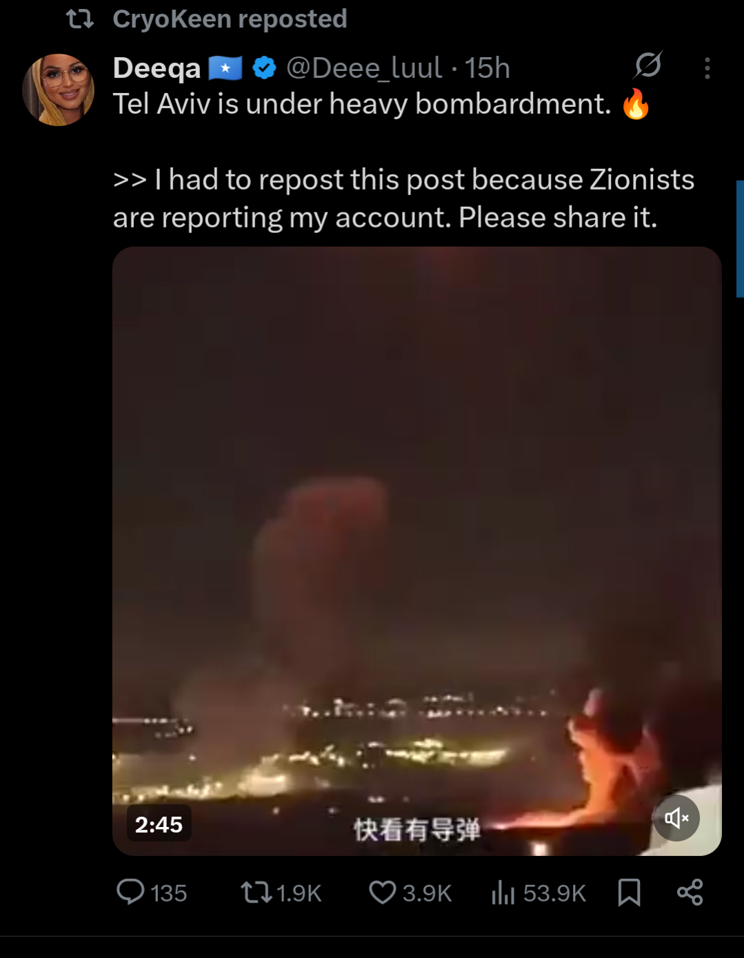its funny how you get mad about cryo not knowing jackshit and retweeting some twitters posts while you're in the same position but instead of sharing something on the internet you call for the death of millions of people and complete tanking of the worlds economy and all for the sake of israels fragile fee fees