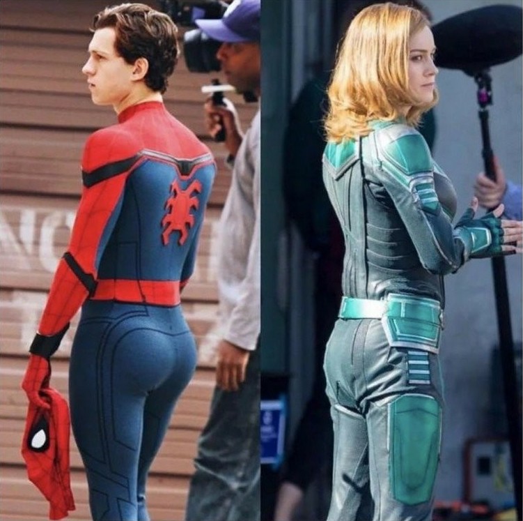 she's basically wearing a motorcycle leather suit with some shit strapped to it. that's so low effort