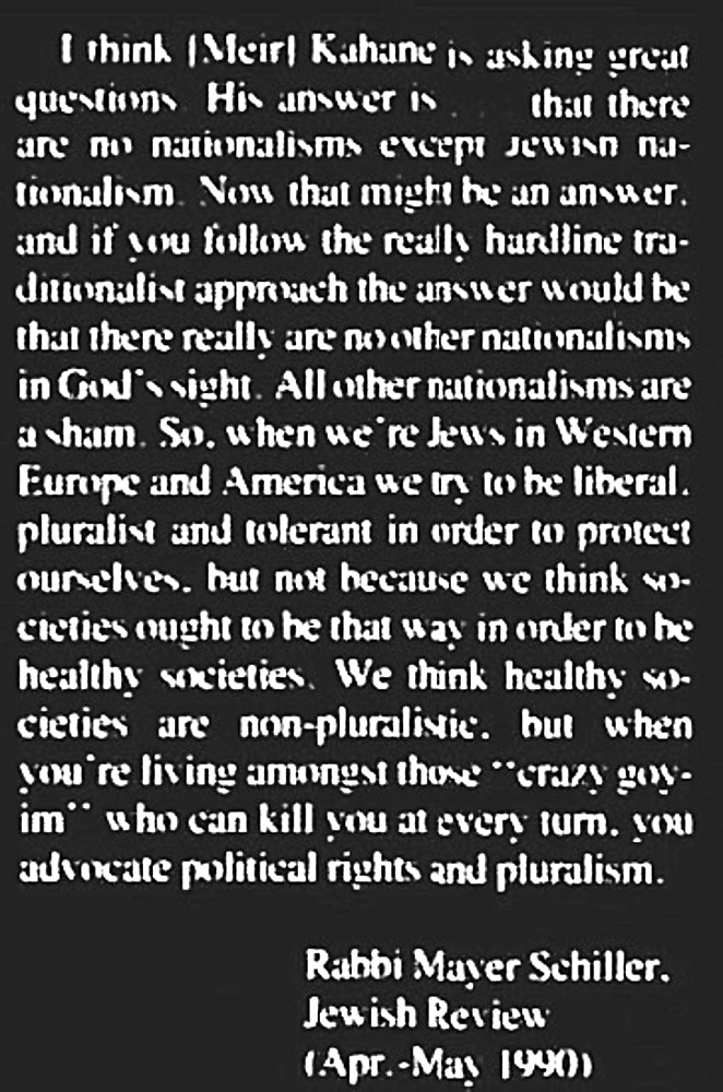 >''The Jews live parasitically on the soil of other nations, but they are inspired with the greatest patriotism toward their own tribe. They stick firmly together. Thus, it is absurd to concede to them a share in the government or administration of any country.''- Arthur Schopenhauer