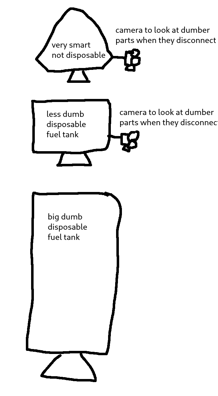 >>24181655most rocket cameras point down because of pic related. They want to watch when the big dumb fuel tanks disconnectspacex starship cameras are placed for a different reason: places that are shielded from the plasma when re-entering