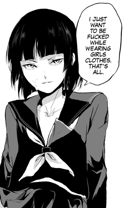 >>24184904>why are people online so nice <333Because they hide their hideous faces and feelings behind tranime girls