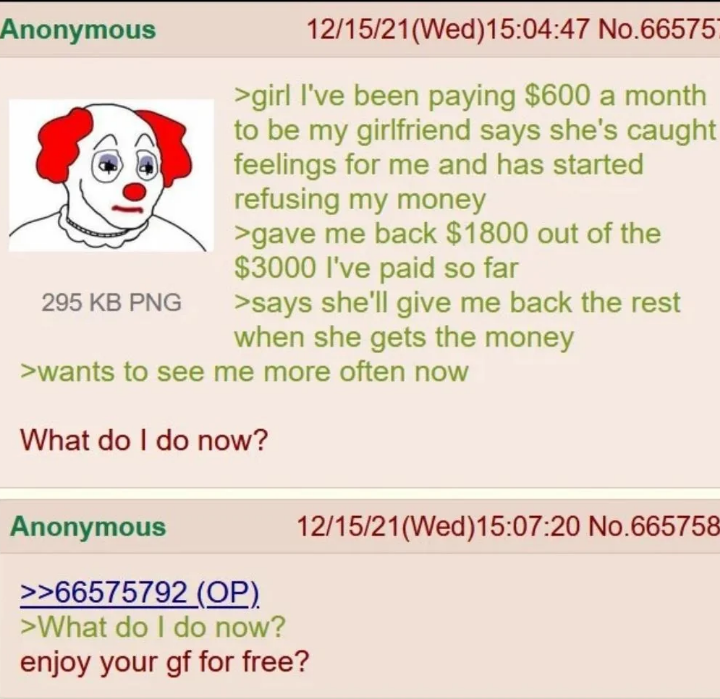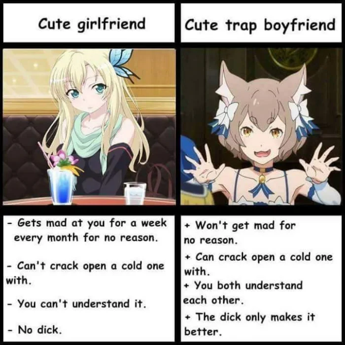>>24193526>boyfriend-free girlsthe fact that chris-fucking-chan himself has a gf now proves her rightI'm also a skinny-fat sperg neet with the nerdiest hobbies and I've had 2 different years long relationship, as much as I hate feminist it's hard to sympathize with incels when it's mostly self inflicted