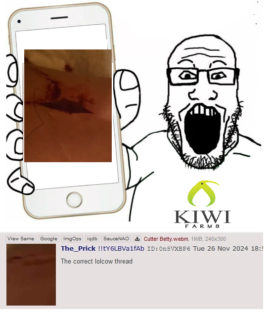 this is why women belong in the house raising babies cooking and cleaninglook what happens when left to there own demisedrinking all day, self harm for pervs to jerk off to, say u like being raped, acting like a toddler for kiwi farmers to masturbate to.grossi would never simp for such a creature