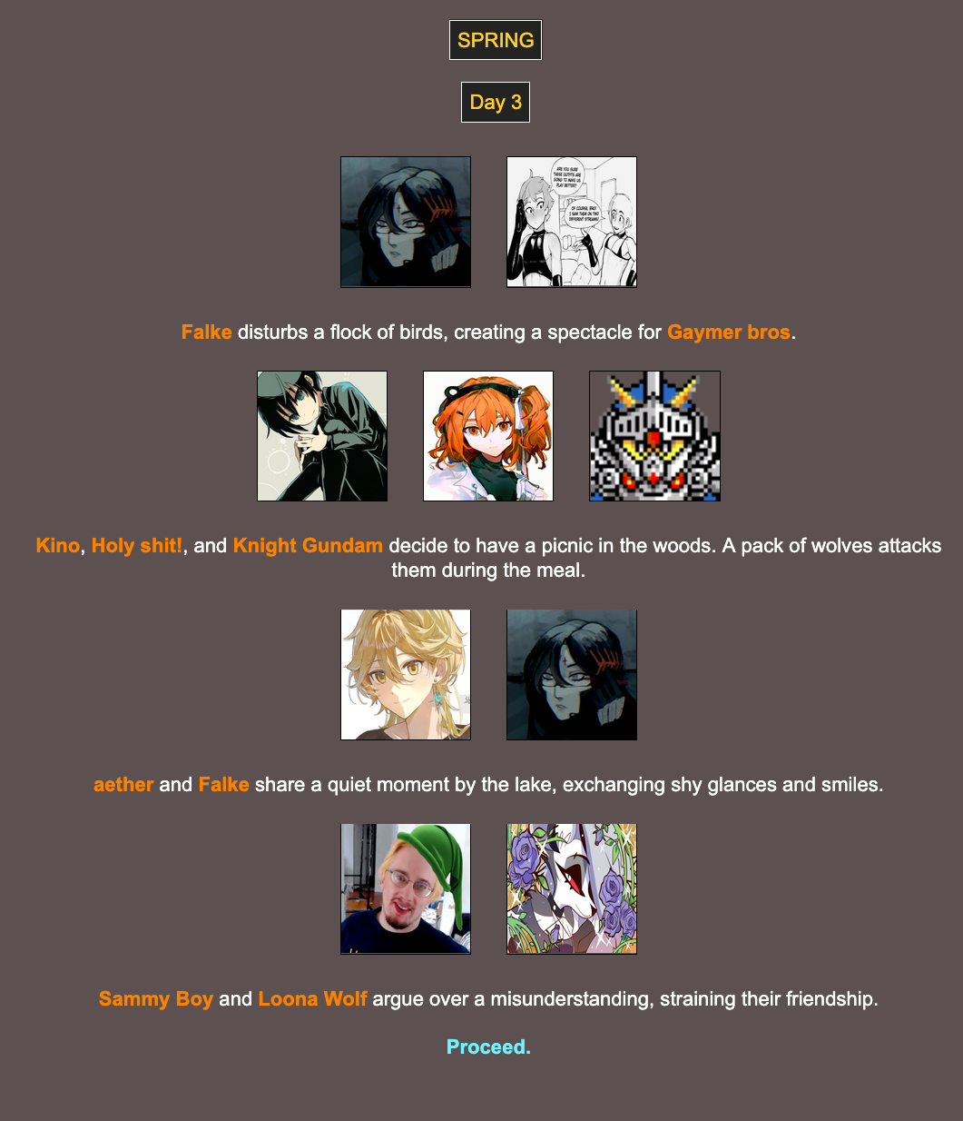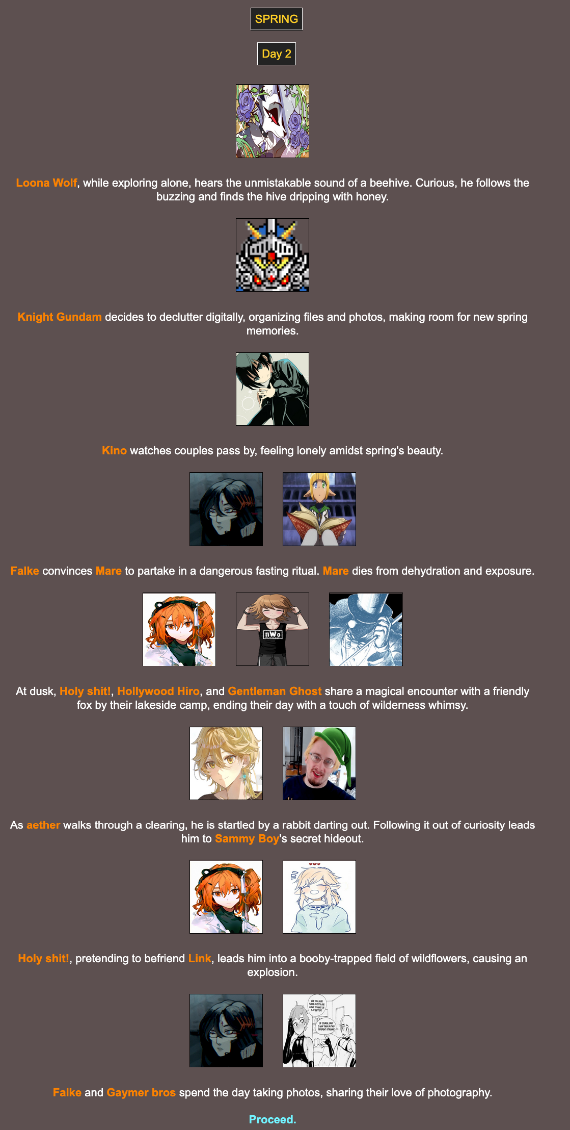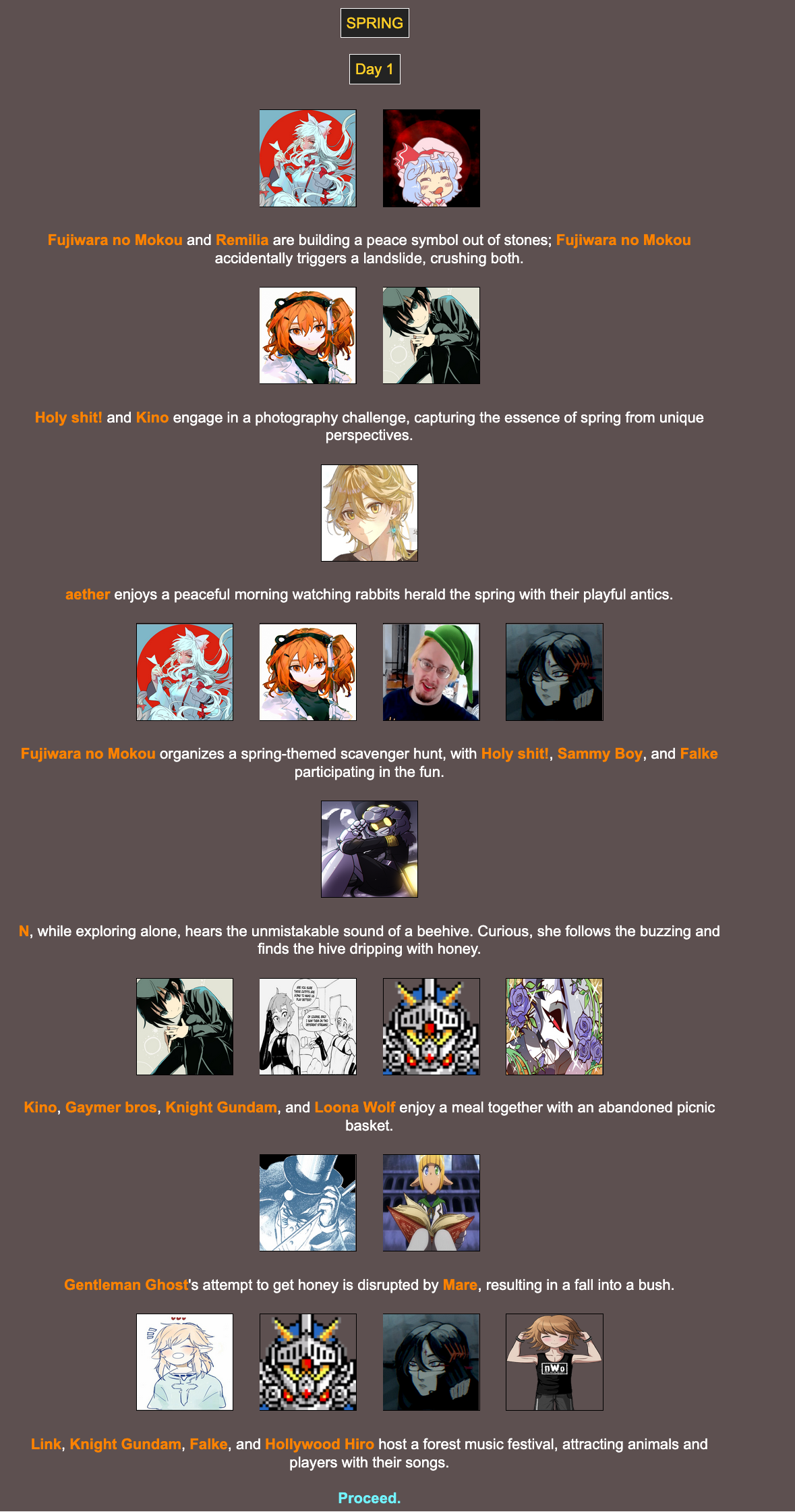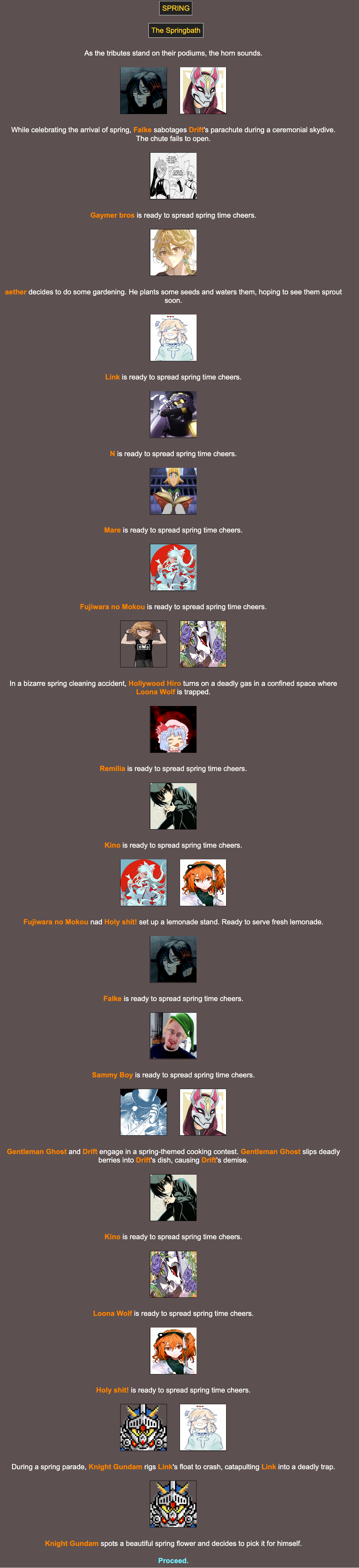 Winterball Nostalgia Edition>We periodically host a web-based battle royale that can include anything and anyone. Shenanigans ensue, and some people attempt to write it into semi-coherent narratives, playing the part of the characters within!Check here for additional details:https://rentry.org/HungerGamesHostingGuideUpdatedhttps://brantsteele.com/hungergames/