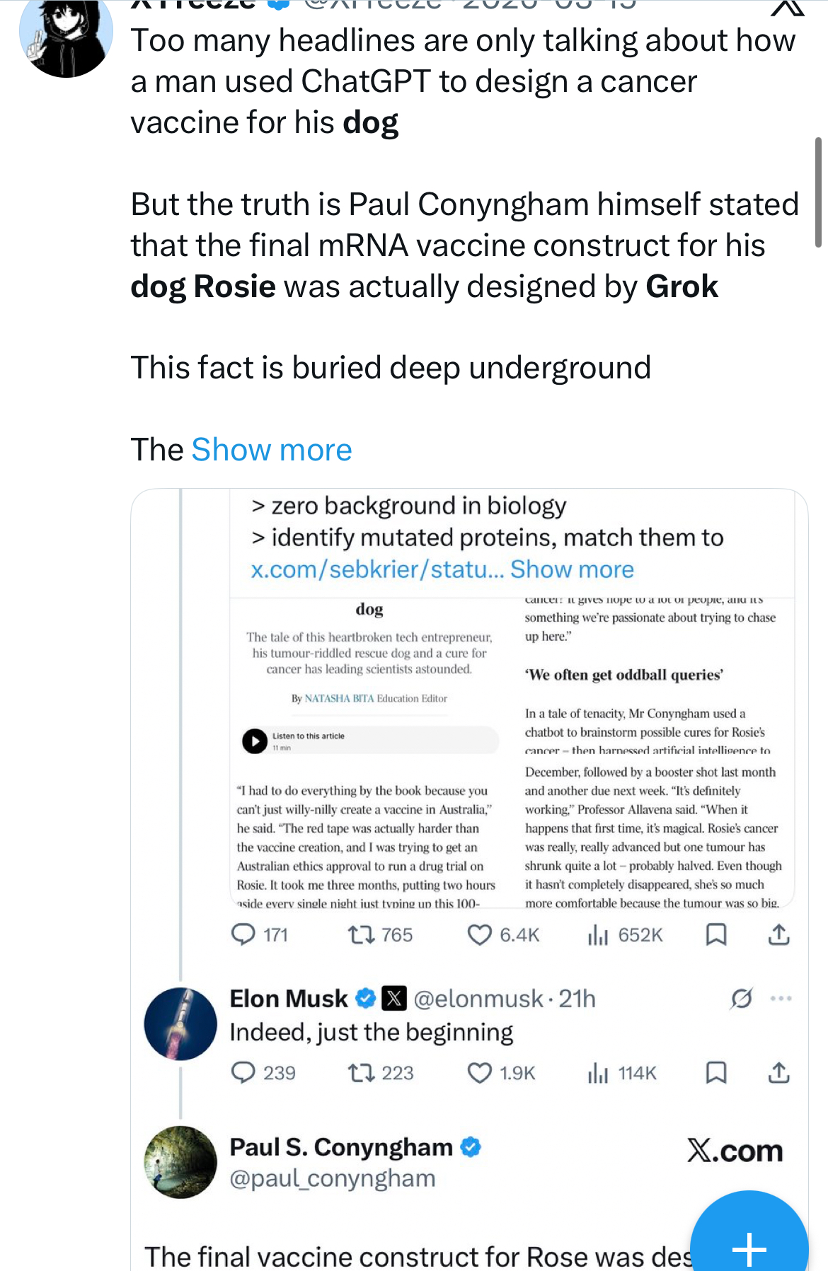 >>62027497Essentially rosie is the first dog “saved” by ai, and that ai is grok. Elon already RTed it, and sol rosie went to 15m, but dogs belong on eth.Eth rosie will flip just like kimchi