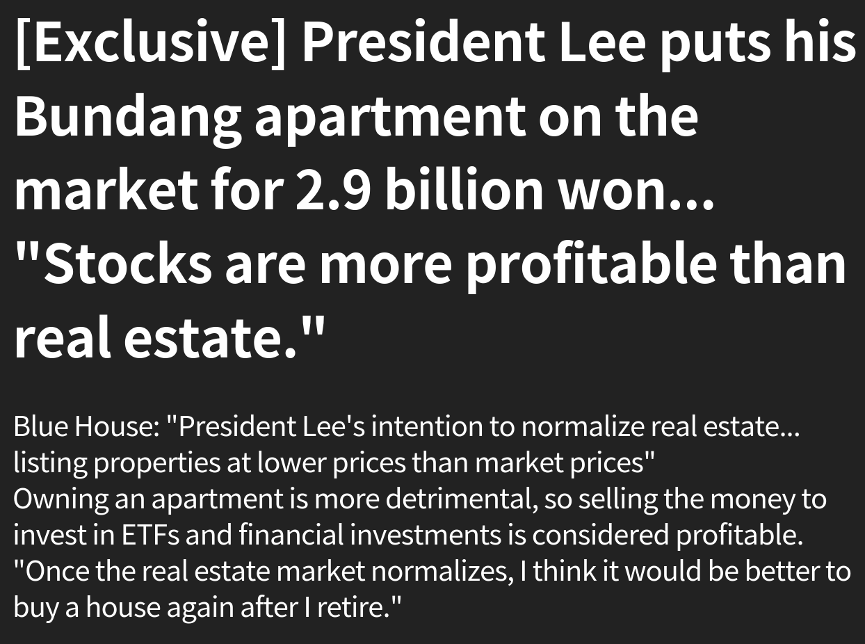 >Lee Jae-myung: Stocks are more profitable than real estate>Korean market destroyed by the warIs this divine retribution?https://www.chosun.com/politics/blue_house/2026/02/27/PKUPY7ZOX5DLBBEMLJNSRJBDNI/