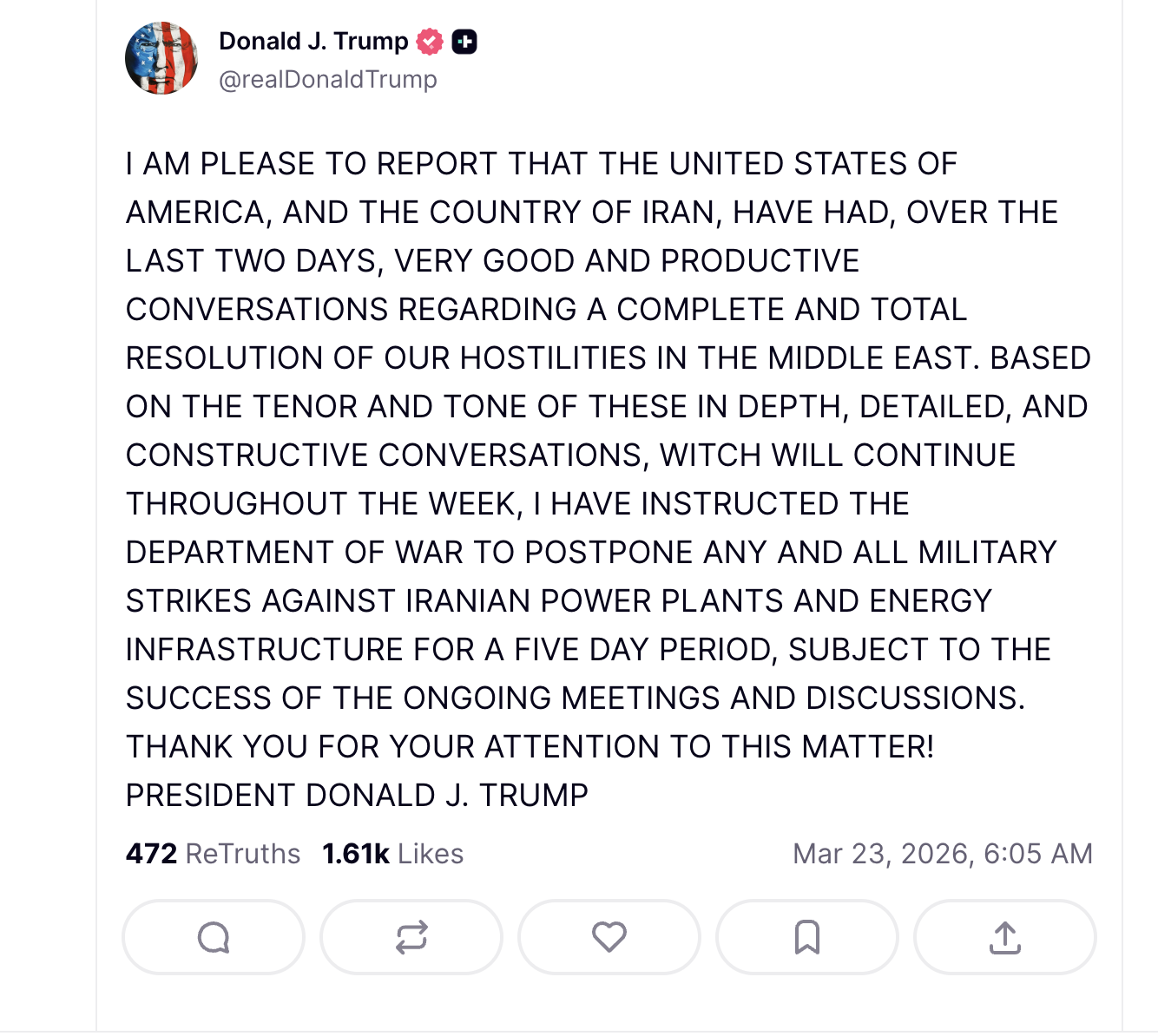 >>62025579why wouldn't it. nothing about the situation changed at all, and israel is not going to stop just because trump said there won't be any more strikes.