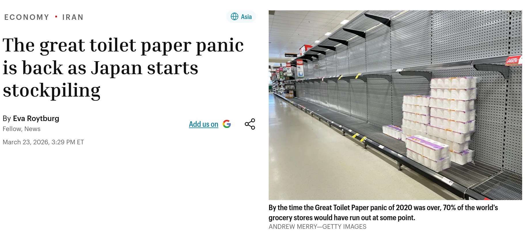 Now is your chance to preparehttps://fortune.com/2026/03/23/toilet-paper-panic-japan-shortages-iran-war-covid-19/