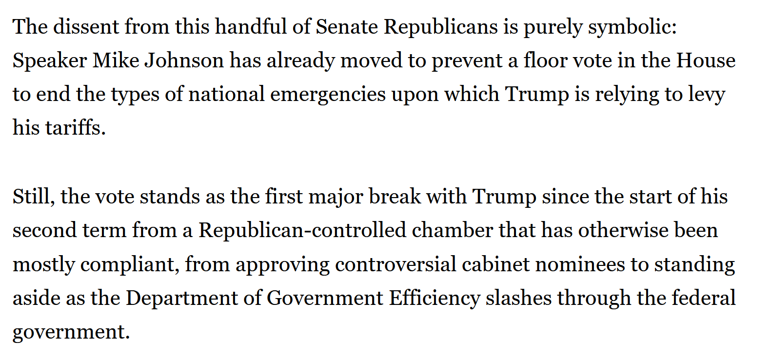 It's just symbolic but it does represent the first time republicans are going against him this time around.And this is before any of the actual consequences of his retarded decisions start showing up in the economy outside of stocks.Going to be interesting to see how things progress as the numbers start showing up