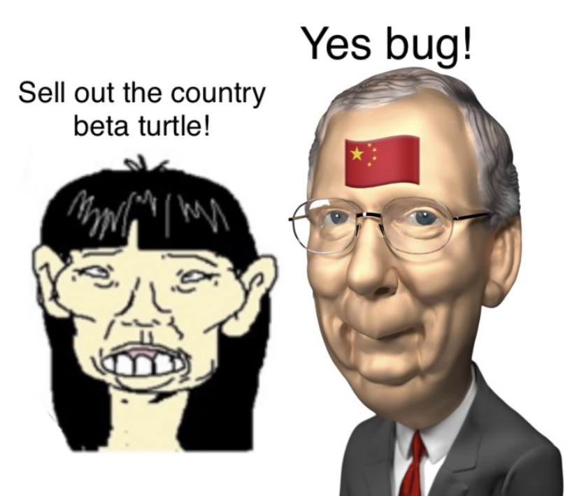 >>60103318>>mitch McConnellMitch is a China bitch, his wife is a chinese spy and a daughter of chinese shipping magnate. Of course they want more outsourcing to china , more billions to her and her dad.