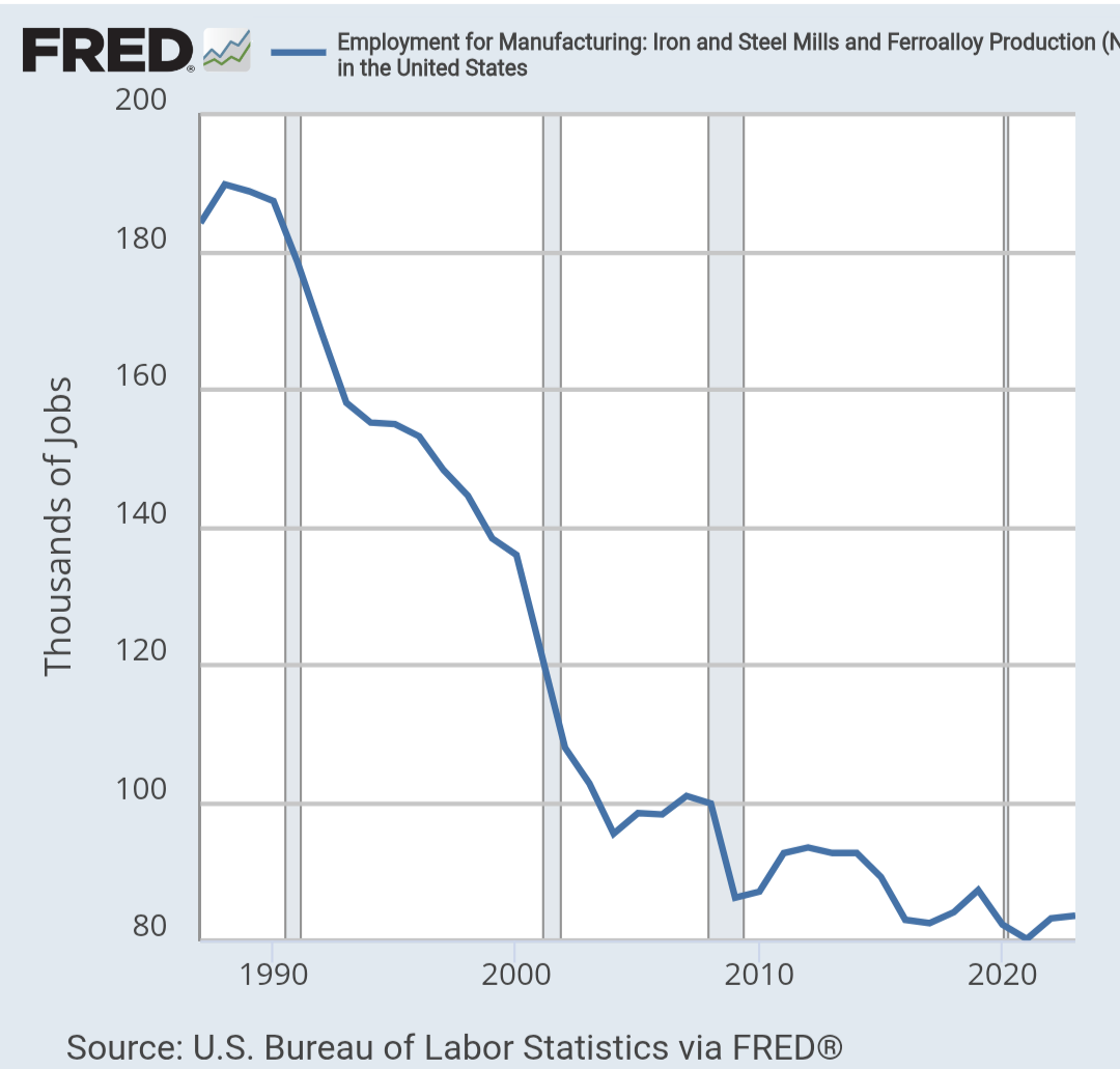 >>60121669Because de-industrializing is not a good thing, the western world will eventually fall under the influence of China. The US needs to be an industrial power as well as a financial and military power.