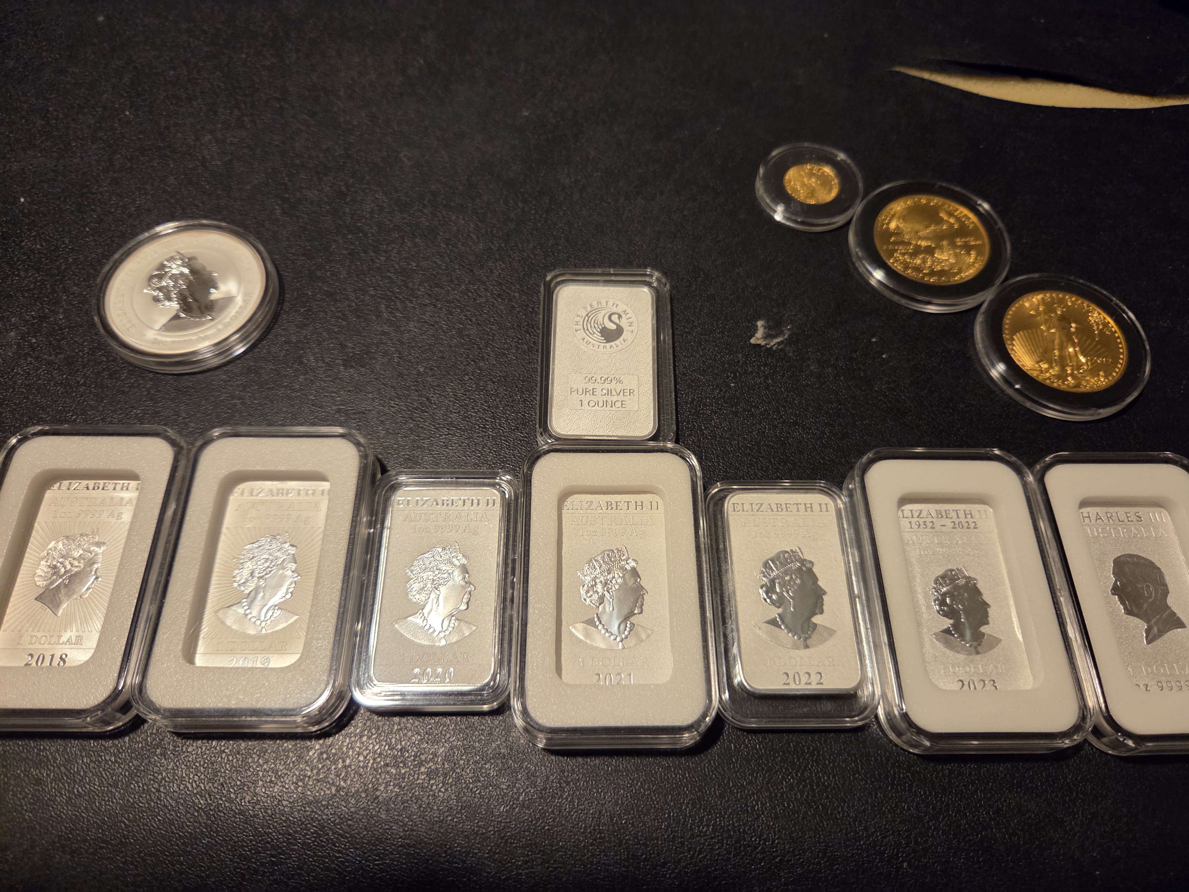 bought 5 silver kilos, a 10oz gold bar, and 100g breakaway today using some of the undermattress cash