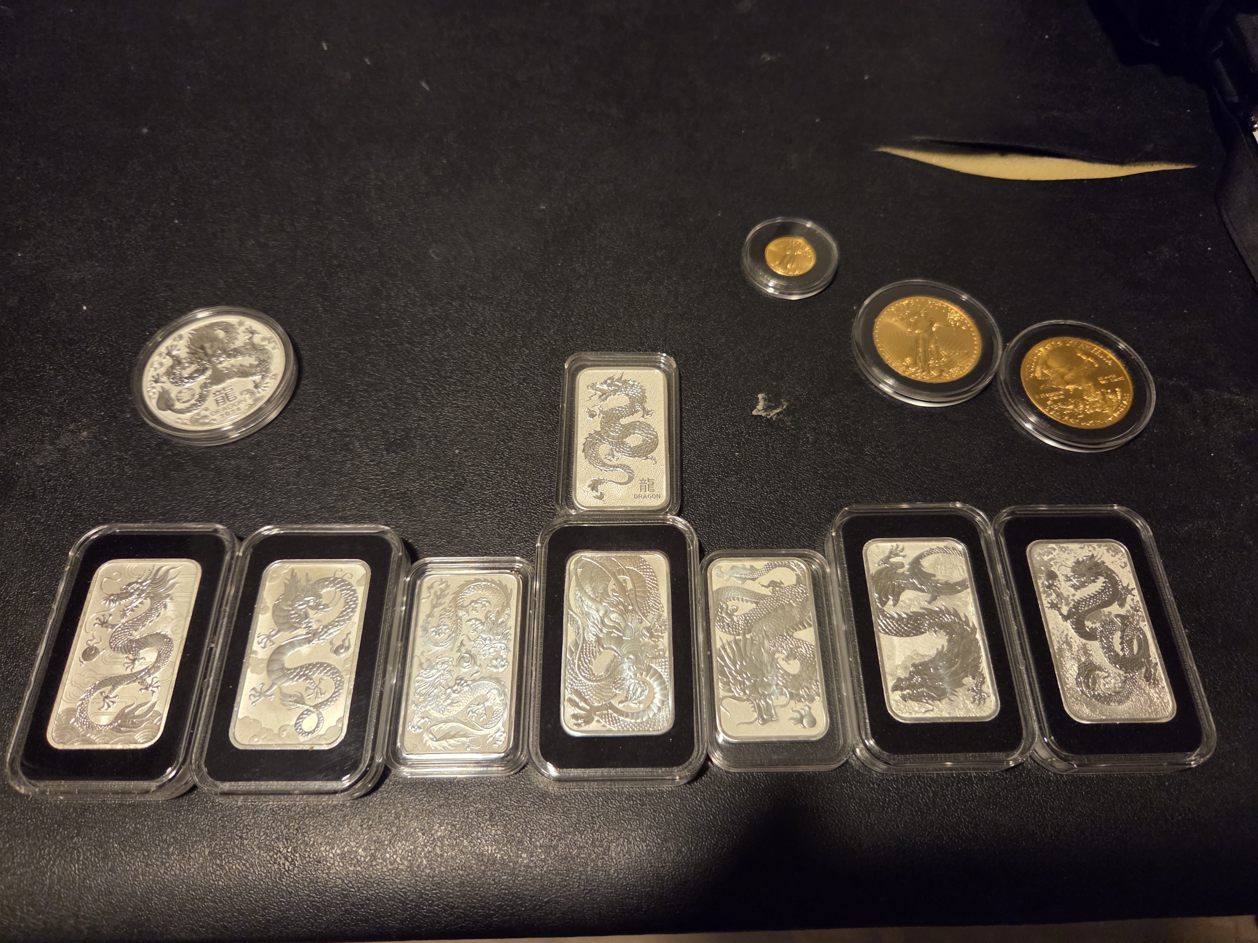 today I gotsome maplessome geigersa 5 oz scottsdale stackermore libertad boobas for the boys (brother and friends)a gold plated dime (eisenhower)some other throwaway gold plated coins for a buck each that are about 20 on ebay anyways 200 iraqi dinar (bad exchange rate but I want to make my lcs man happy always)and a band of an unfathomable denominations worth of hell dollars+ 1 silver gram for my coworker I was hanging out with before we went to the gym and then wage cageAnd I had a good day too and did alot of pullups