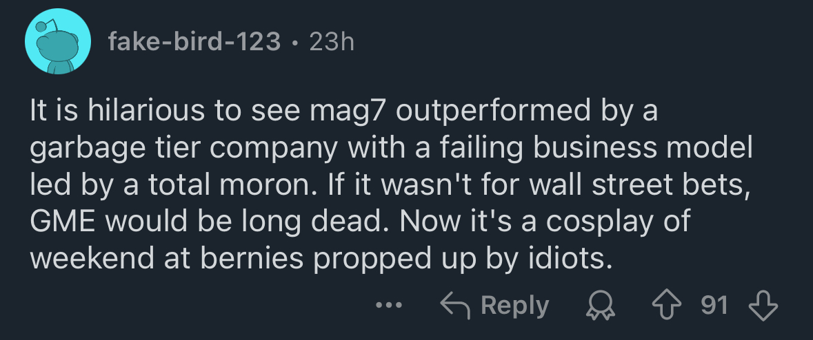 >>60138892Plebbit is malding.https://www.reddit.com/r/Superstonk/comments/1js9l1b/lc_on_x/