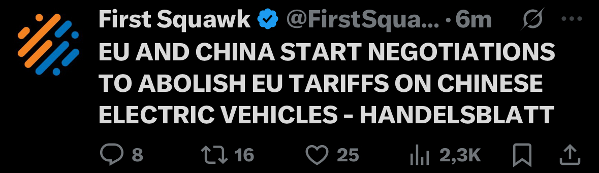 Actually German car manufacturers were the ones who wanted no tariffs on Chinese EVs because they closely cooperate with Chinese manufacturers and China is one of their biggest export markets, so they were afraid of retaliation.