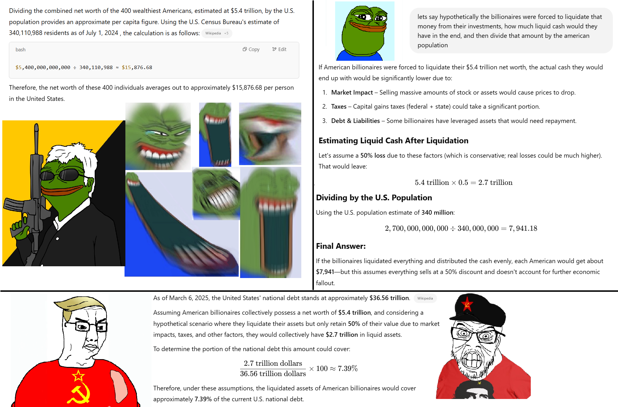 >>60257678>Taxing the billionaires.You can tax 100% of their wealth and you wouldn't even touch the deficit, let alone the debt.