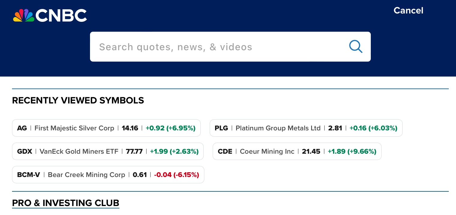 >>610856761911 GOLD CORPAGNICO EAGLE MINES LIMALAMOS GOLD INC. CLASSANGLOGOLD ASHANTI PLCB2GOLD CORPCENTERRA GOLD INC. COMMON SHARESCOEUR MINING INC. COMENCORE ENERGY CORP. COMMON SHARESENDEAVOUR SILVER CORPOENERGY FUELS INCEQUINOX GOLD CORP. COMMON SHARESFIRST MAJESTIC SILVERFRANCO-NEVADA CORPORATFRESNILLOGALLEON GOLD CORP.GLOBAL X SILVER MINERS UCITS ETFHECLA MINING COMPANY CHANETF AUAG ESG GOLD MINING UCITHEADWATER EXPLORATION INCINTL TOWER HILL MINES LTDIDAHO STRATEGIC RESOURCES INCK92 MININGKINROSS GOLD CORPORATILUNDIN GOLDMP MATERIALS CORP. COMMON STOCKMCEWEN MINING INCMETLEN ENERGY AND METALS PLCNEW AGE METALS INCNIOCORP DEVELOPMENTS LTD. - COMMNEWMONT CORPORATIONPERSEUS MINING LTDSILVERCORP METALS INCSNOWLINE GOLD CORP.SSR MINING INCSANTACRUZ SILVER MINING LTDSILVER STORM MINING LTDTRIPLE FLAG PRECIOUS METALS CORPUNITED STATES ANTIMONY CORPUCORE RARE METALS INCVANECK GLOBAL MINING UCITS ETFVANECK GOLD MINERS UCITS ETFVANECK JUNIOR GOLD MINERS UCITS ETF