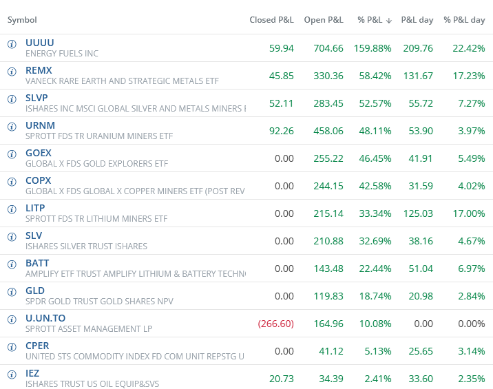 >>61111302>What was your reason for selling? I'm still holding.I sold with 185% profit on my UUUU position to make somewhere else money, turns out im a retard>>61111303>Get a broad mining or materials etf, I'm never a fan of fomoing into individual tickets, but the sector is going to be hot for a whileI know, its gucci