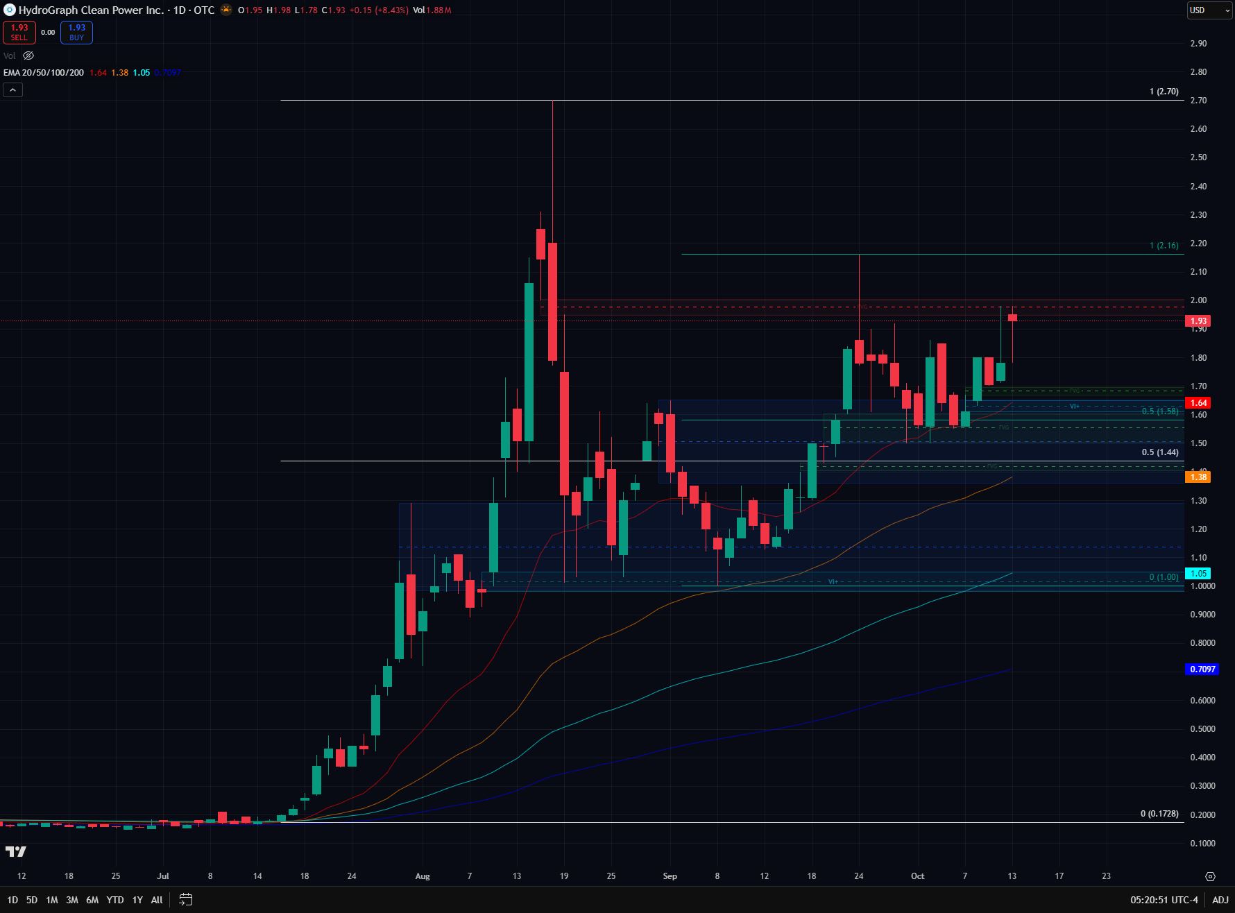 >>61111361I don't know what you're doing for TA, but I use a subset of ICT. Looks bullish to me. Once it closes on the day above the bearish FVG at $2.00, there's no stopping it from heading to ATH and new round of price discovery. It's had plenty of time to consolidate and go to multiple rounds of discount retracement. It's primed.