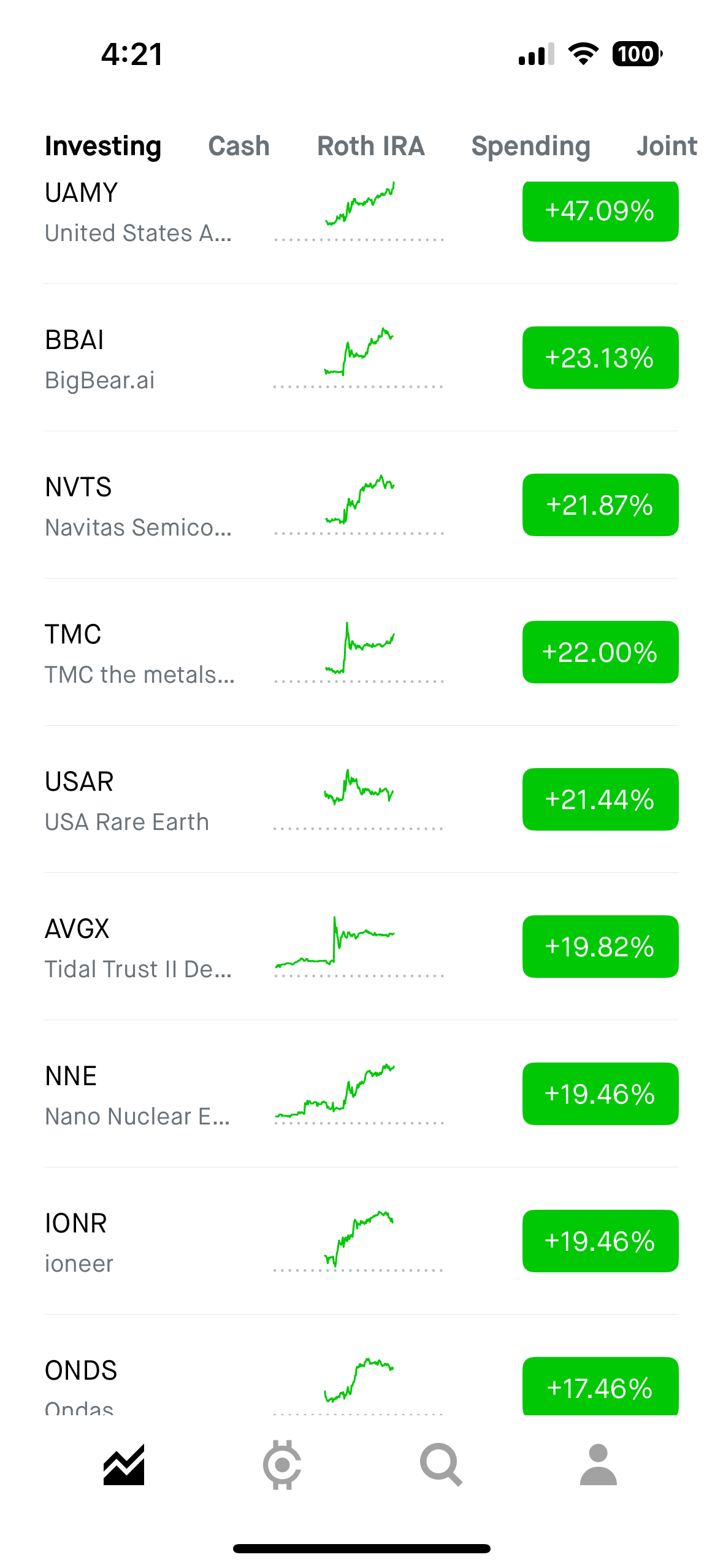 >>61106953I got NVTS and ONDS. I bought ONDS by mistake, but what are you going to do, its free money.