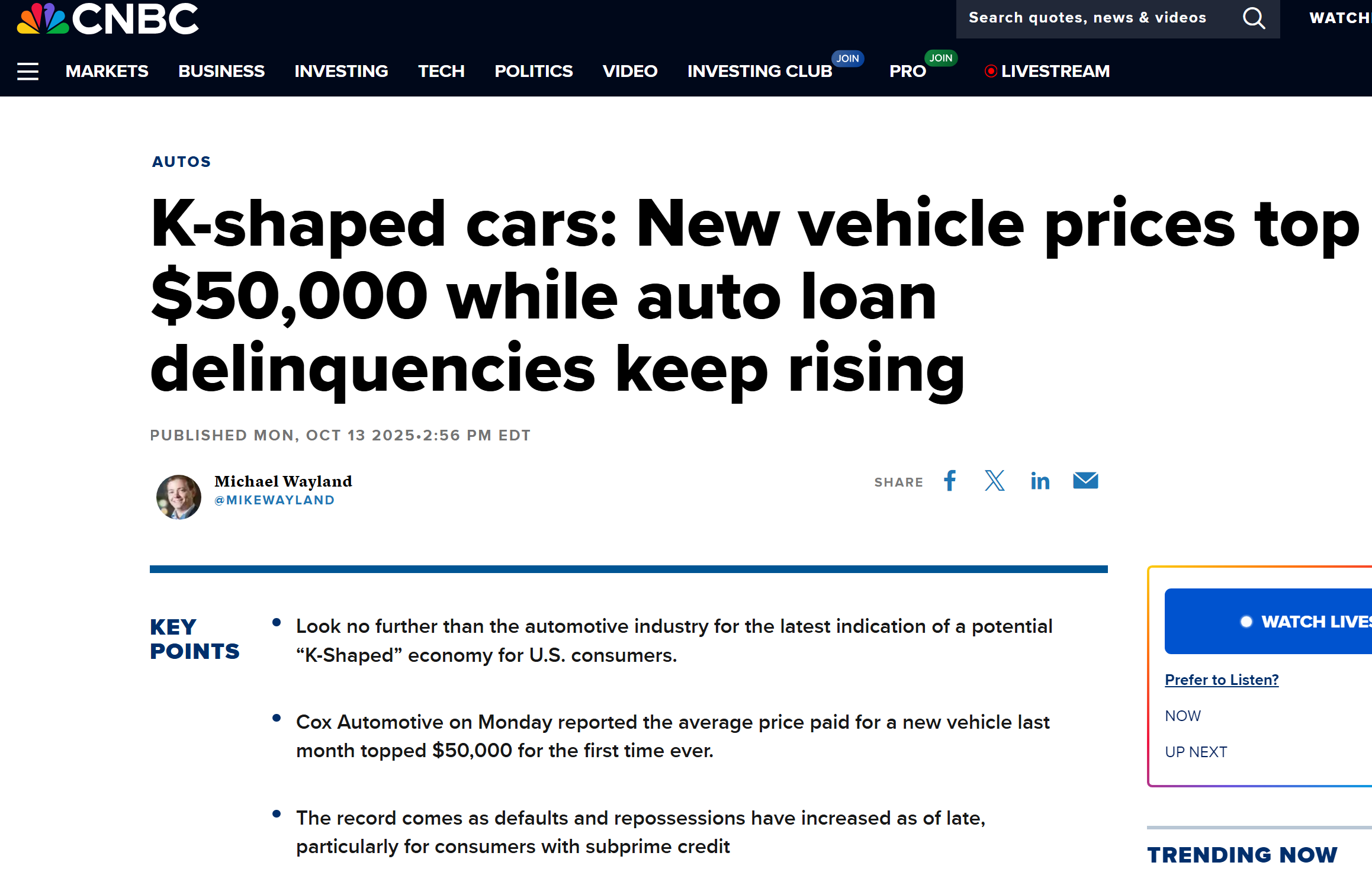 >>61106995>>61106998https://investors.carmax.com/news-and-events/news/news-details/2025/CarMax-Reports-Second-Quarter-Fiscal-Year-2026-Results/default.aspx>Retail used unit sales decreased 5.4% and comparable store used unit sales decreased 6.3%; wholesale units decreased 2.2%.>CarMax Auto Finance (CAF) income decreased 11.2% to $102.6 million as an increase in the provision for loan losses outweighed growth in the net interest margin percentage.>Repurchased $180.0 million in shares of common stock, continuing our accelerated quarterly pace compared to fiscal year 2025.lol