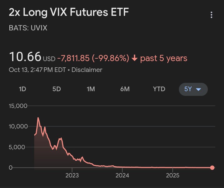 >>61106196Fun history lesson: During the bull run fueled by ZIRP there were some people who kept everything in short VIX ETFs, then in 2018 the VIX spiked in an event known as the Volocaust (or Volpocalypse in polite company). Some of those funds don't exist anymore.