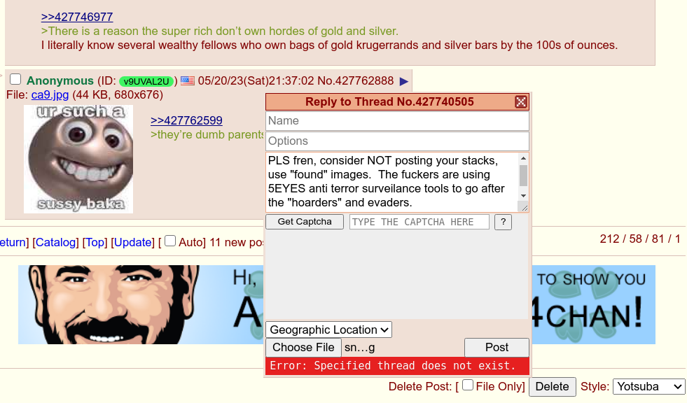 /pol/ is compromised :(Nobody wants to talk about precious metals. All they want to do is namecall each other and make weird racial fetish posts. It feels bad, a whole generation will ignore /pol/ and all the useful information buried beneath the shit.