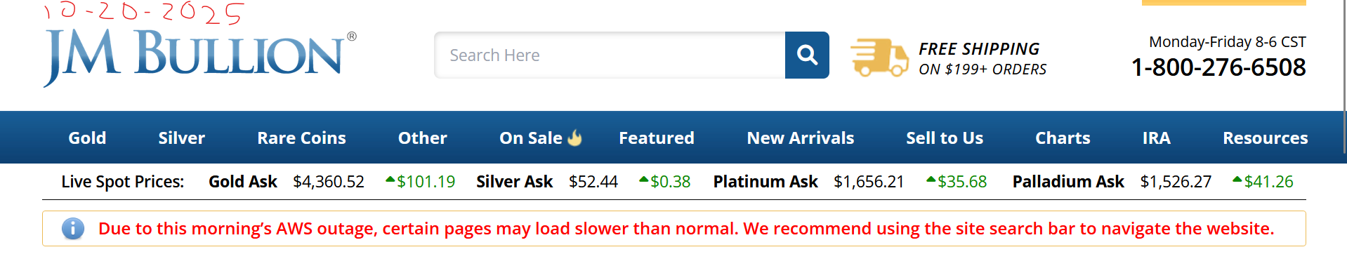 Half the internet being down today builds additional sentiment for having physical gold and silver