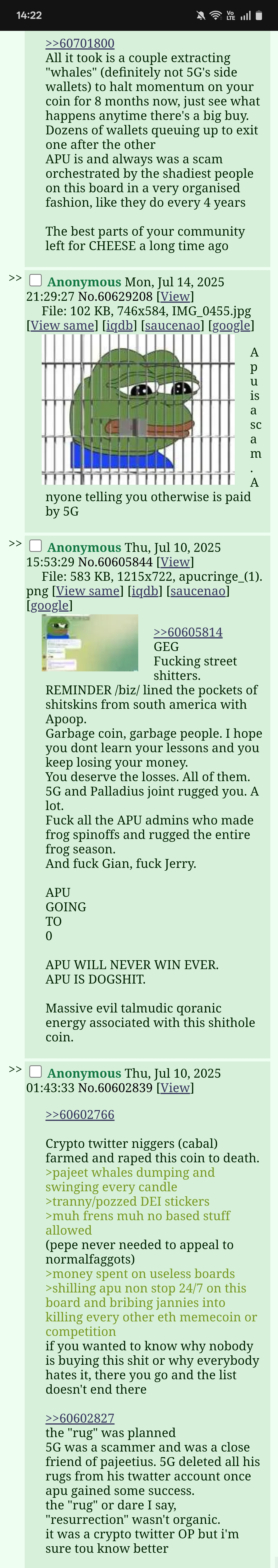 >>61162167When did that farm manage to pump to even 100m and 5x more from there?I'll waitpost chartsApu is 5x higher than your faggots scam.Gtfo