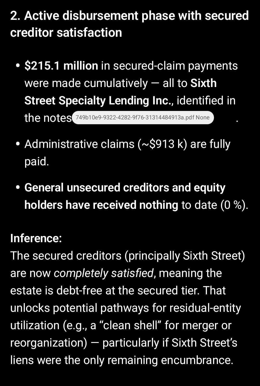 >>61178969Having Sixth Street out of the way is a huge deal. They've basically been in control of this entire bankruptcy, and having them paid out clears the way for everything we have been waiting for.