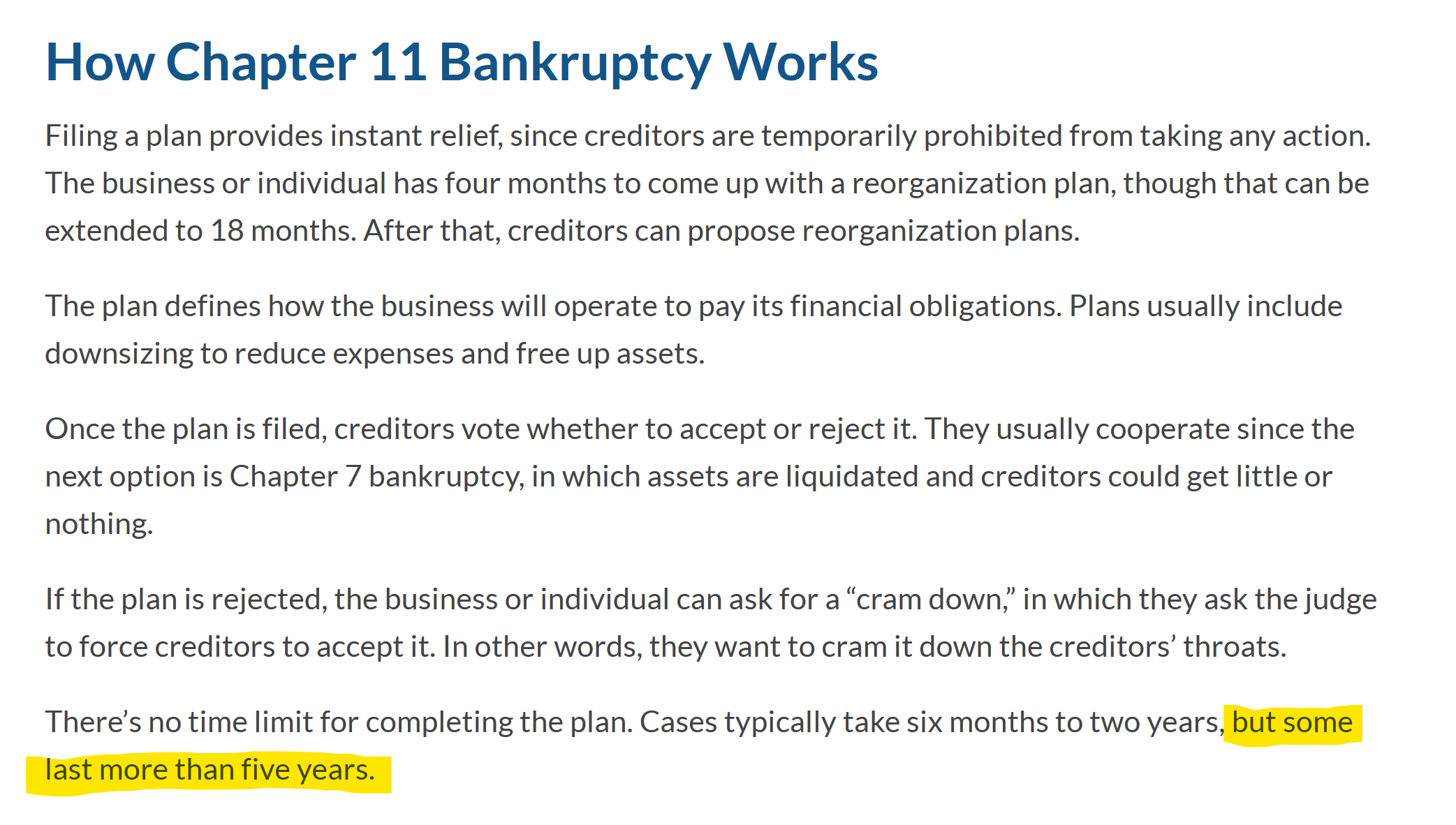 Reminder that chapter 11 bankruptcies can take up to 5 years or more to finish.
