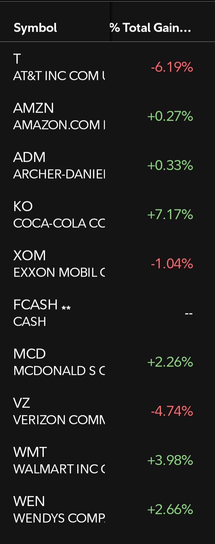 As expected diversification is retarded and soulful knowledge reigns supremeMcd, ko, adm, wmrt