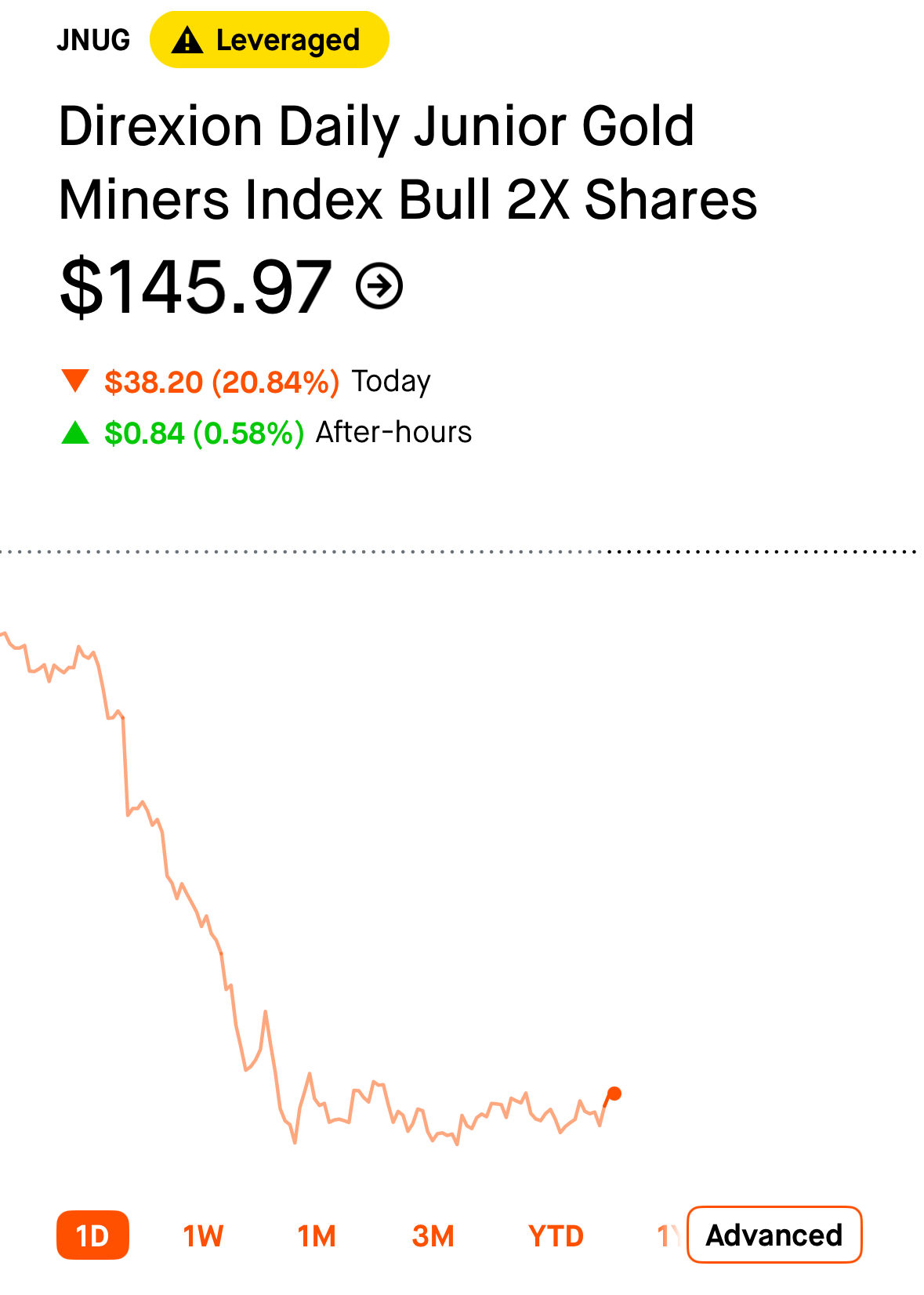 You DID buy the JNUG dip off the 5% selloff blowoff top dip in gold with the latest downward move in gold futes in not seen over a decade..right anon?Back to 4400/oz soon enough