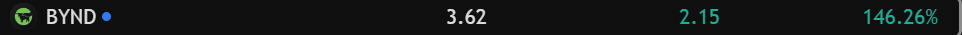 I SHOULD HAVE BOUGHT BYND PREMARKET WHEN IT WAS $1.50WHY AM I SUCH A PUSSY WHY DO I ALWAYS MISS THESE ROCKETSI ALWAYS THINK THEY HAVE PEAKED, THEN THEY GO UP ANOTHER 100% FUCK ME