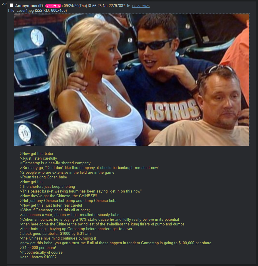 >>61170610This is from the day Cohen bought into GME, a few months before the squeeze.I made this because I was sick of people doubting me.To think I only trippled my money instead of became filthy rich. Who could have FUCKING KNOWN.