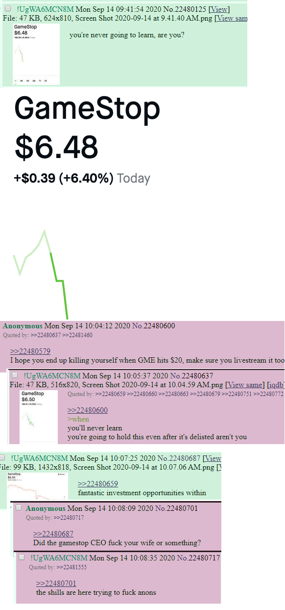 >>61170642in general though if you're early enough, it's better to just trim your position in parts, dont panic and take profit all at once, i learned that mistake the hard way but at least i was only a 4-fig poorfag back then (well ended up 5-fig midway but coulda been mid 6-figs in one sweep oh well theres always another opportunity)if ur chasing then be careful obviously, im not touching BYND even if i wouldn't be surprised for another +100% day maybe even +500% if somehow a big chunk of short sellers get finally margin called all together