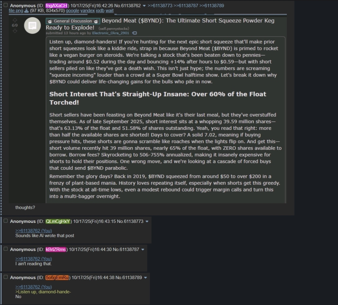 >some anon comes into /SMG/ to tell everyone about Beyond Meat and everybody laughed at them.