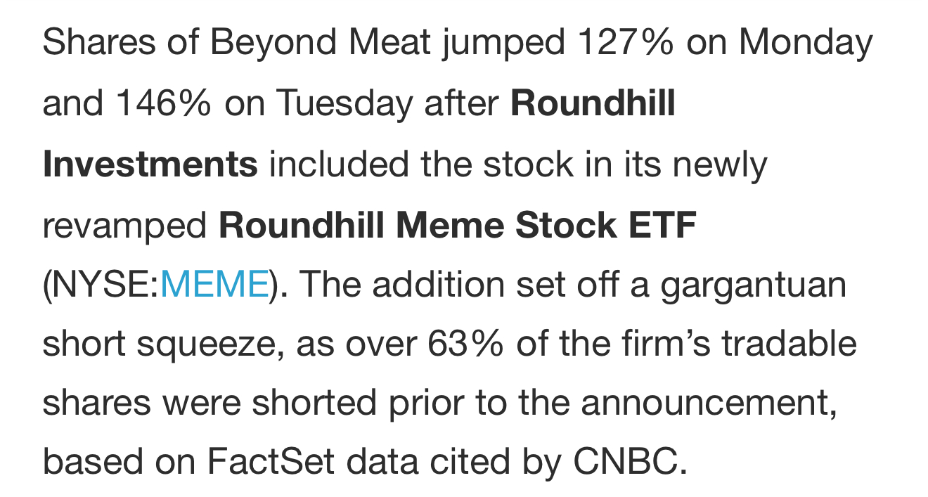 I would never in a million years prop up price to punish short sellers to save Beyond fucking Meat. This is like the globalist GME desperate play. Anyone who does this is a literally useless eater who probably would eat it to help its revenues and just in general.