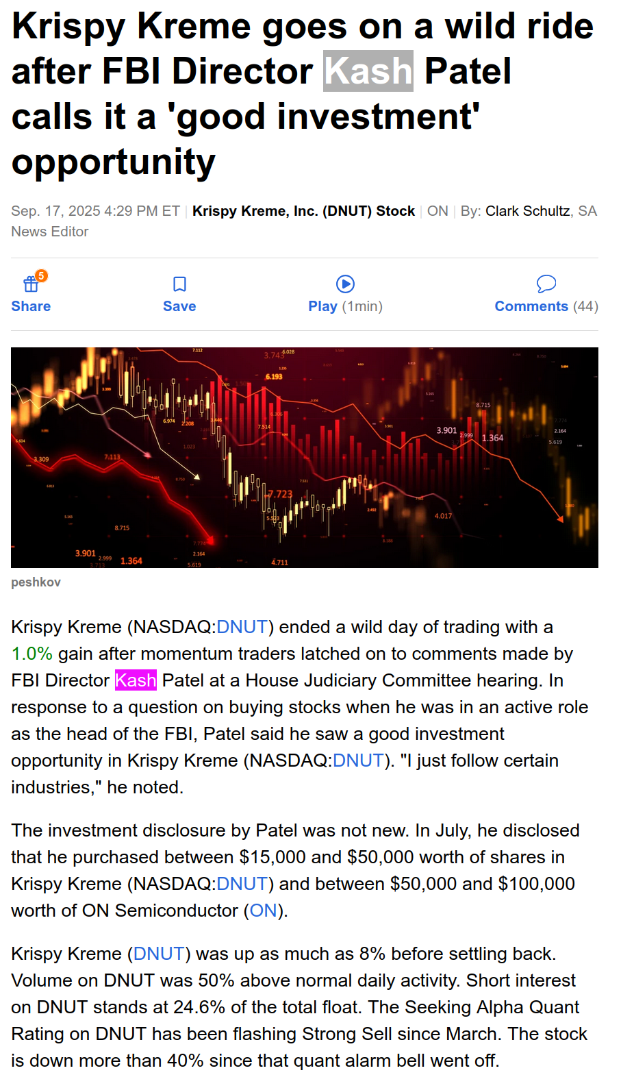 I fucked up on DNUT do I sell and erase all my YTD gains, hold and risk bigger loss, or wait and pray. Fucking shouldn't have traded today I hate meme shit.