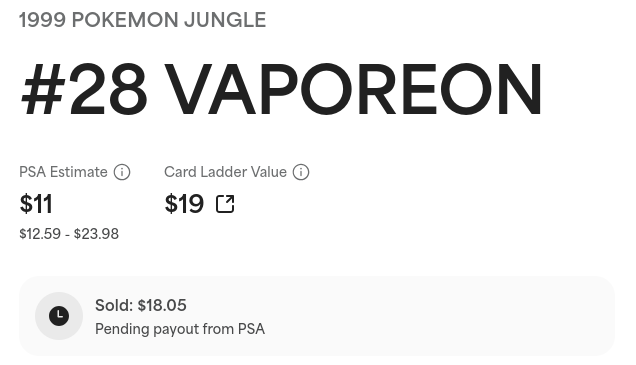 It wasn't a total loss though, PSA was willing to buy the Vaporeon off me for 2x it's current going value. They were also willing to buy the Venomoth for more what it's worth on ebay.