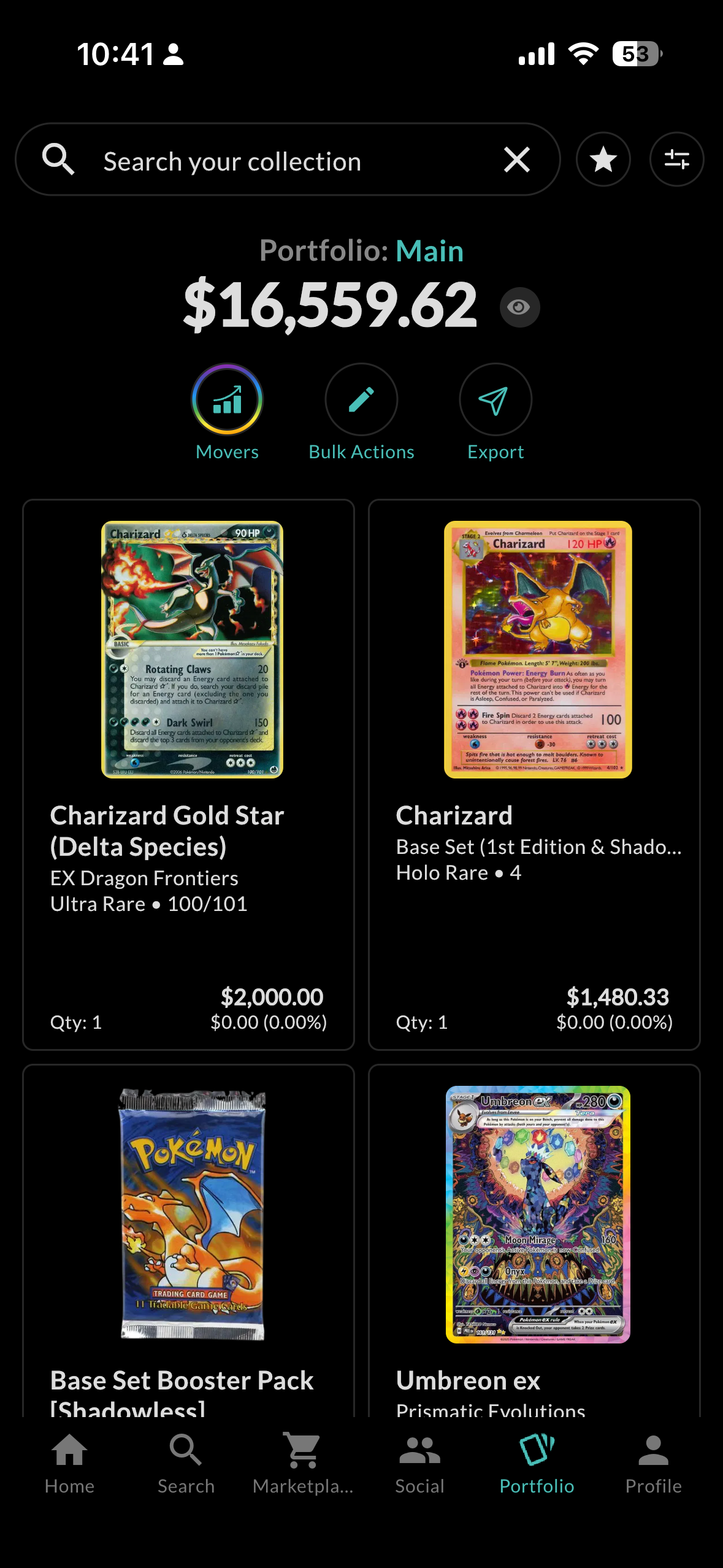 charizard count: 3000+, invested $25-30k so far, estimated value $50k+, nothing insane (holding 100 booster boxes for 2 years would have returned 5x) but im happy with my collection + passive gains