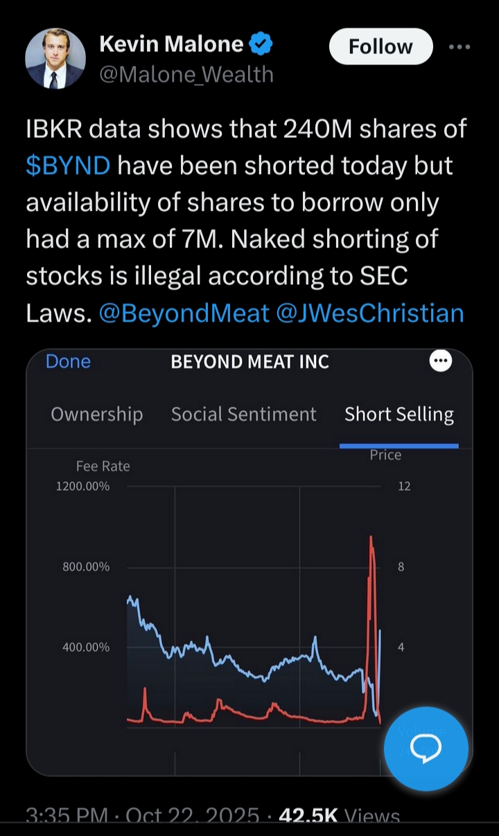 The price is being lowered artificially. The market is being flooded with naked shorts. It happens that the US has T+2 policy, which means that these shares have to be delivered in two days, and from who do you think they will have to buy it? Let's weaponize their greed against themselves. BYND TO THE MOON!