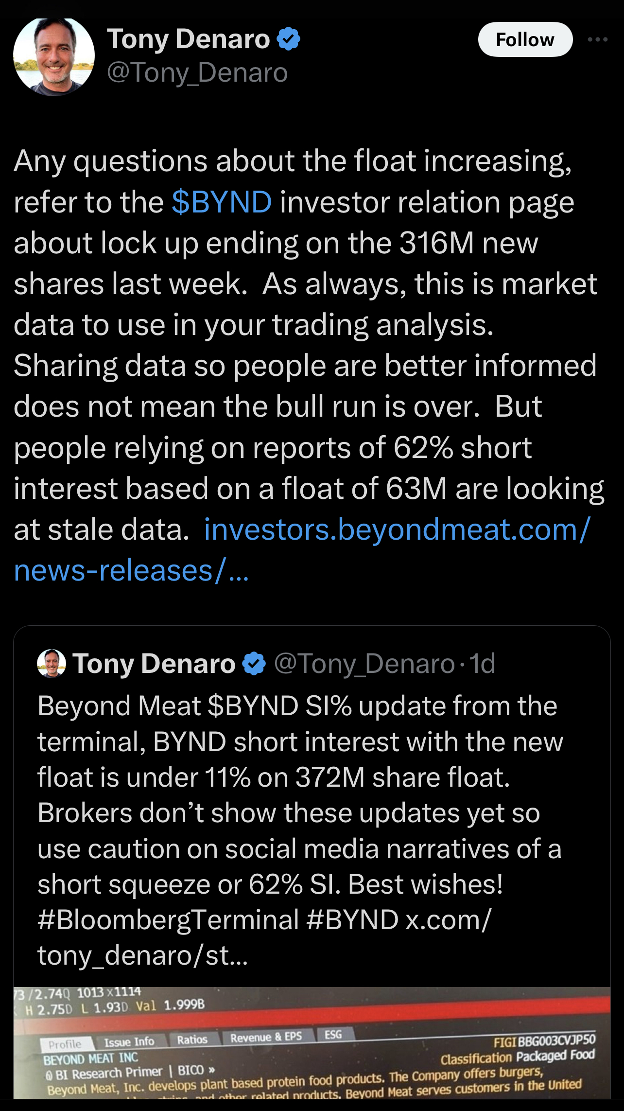 Liar he's a hedge. All bets are off!!!! Believe in the MEMES!!! BEYOND MEAT!!!!!!!!!!!!!!!!!