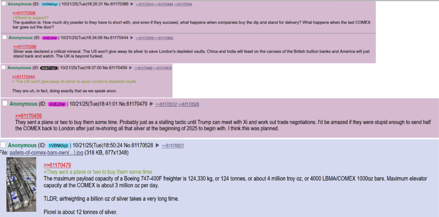 >>61186294>The whole point of the LBMA and the COMEX was to flood the market with paper silver, creating high volatility, with the express purpose of discouraging institutional investors. Industry could take delivery, but silver as a commodity was uninvestable because of the huge price swings.From Wikileaks