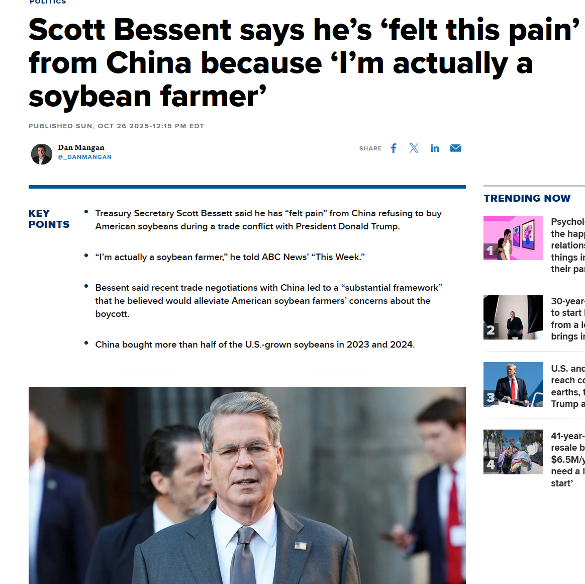 >BREAKING: China will make “substantial” purchases of US basedbeans, Treasury Secretary Scott Bessent said